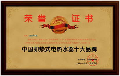 近日,德恩特品牌又被“中國(guó)即熱網(wǎng)”(www.jrrsq.com)評(píng)為“中國(guó)即熱式電熱水器十大品牌”,并榮獲第二名。